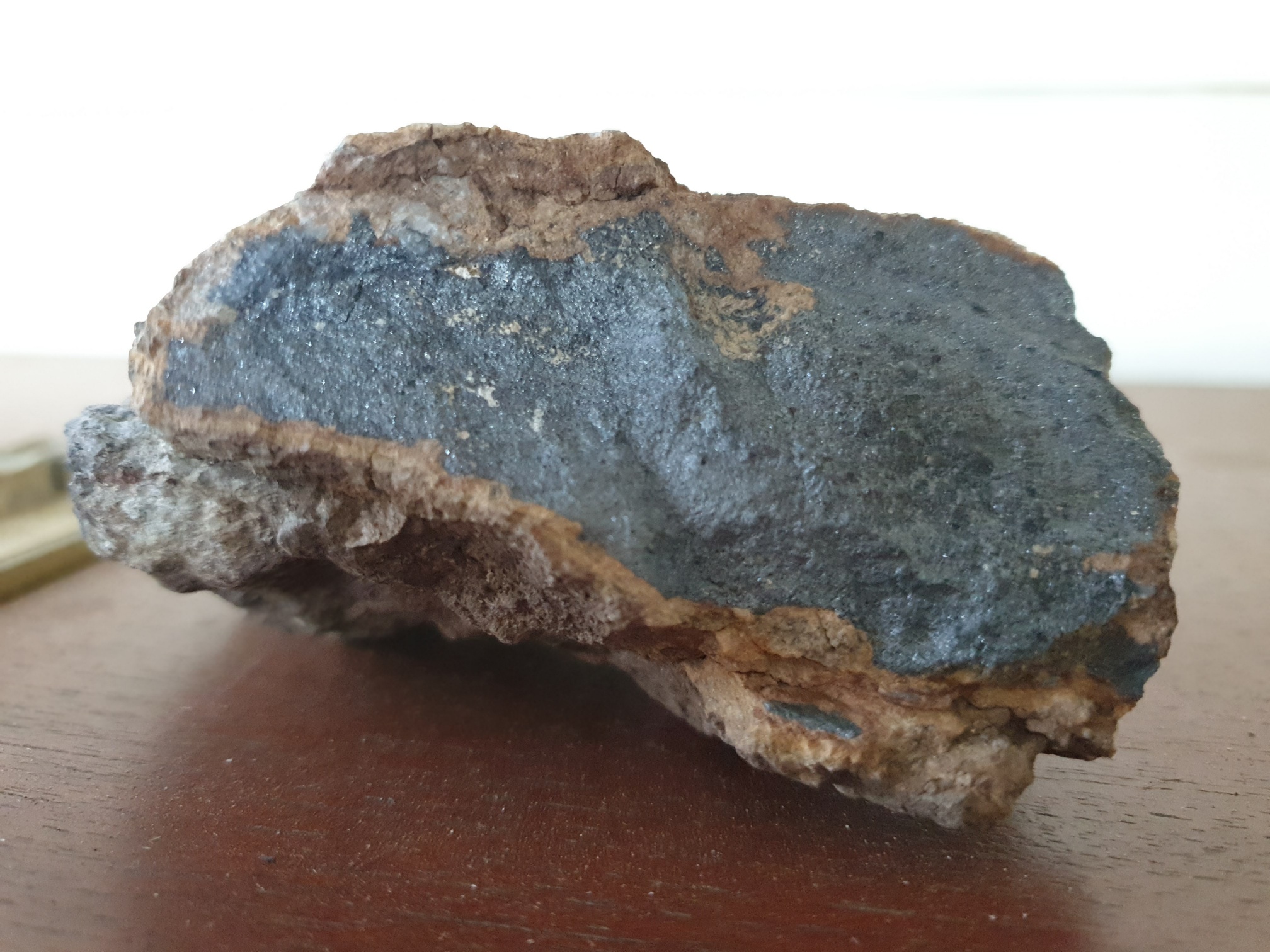 The antimony mineralisation is expressed as vein-style occurrences hosted within arenite, forming a distinct ridgeline approximately 170 metres in strike length and up to 20 metres in width. The ridge is located approximately 600 metres west of Sandy Creek, immediately off Maytown Road, within the Palmerville Station landholding and inside EPM 27452. A representative rock specimen collected from the ridge displays dense, metallic mineralisation consistent with antimony-bearing vein material.