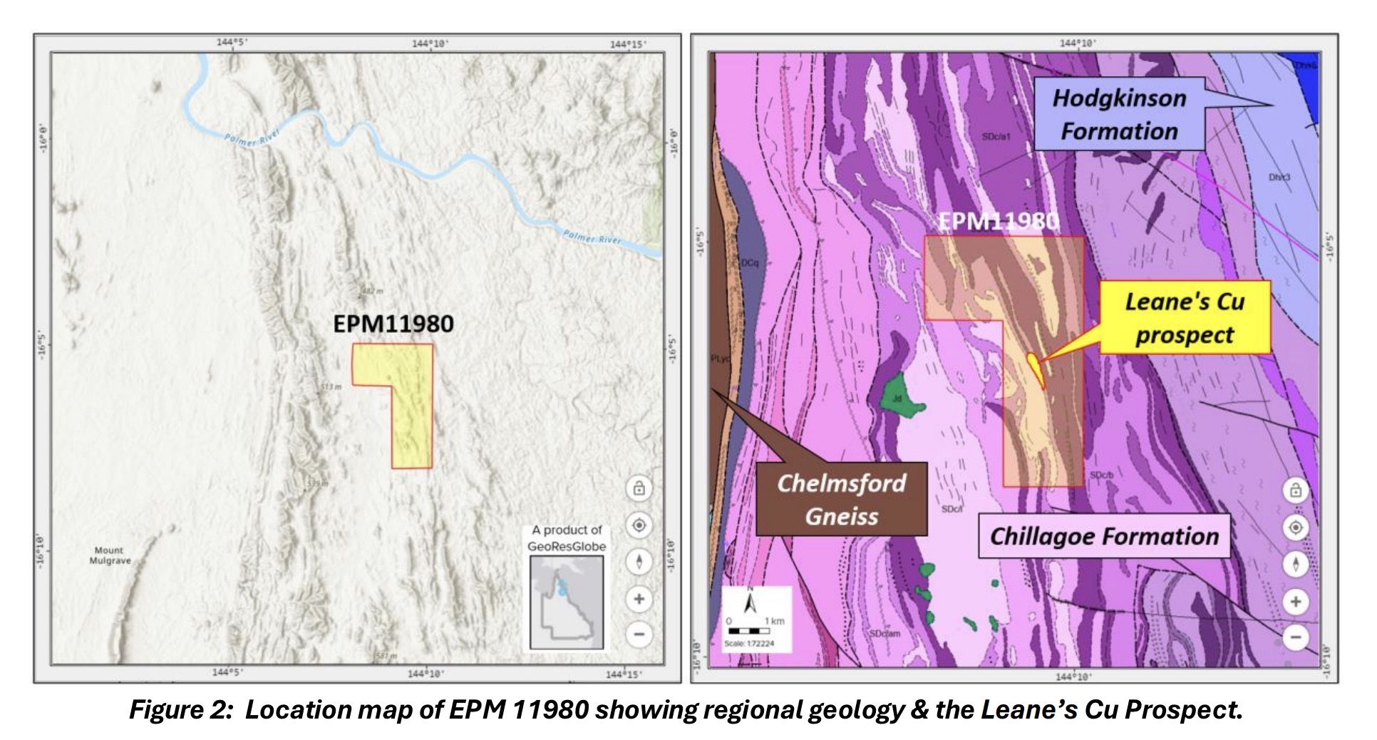 Exploration Permit for Minerals (EPM) 11980, Limestone Creek tenement is situated approximately 120km to the north of the Mungana and Red-Dome copper-gold mines, and 130km north of the Chillagoe Township in North Queensland. It is part of Diversified Mining and Resources Pty Ltd (DMR) Palmerville project acquired from NMR which comprises nine EPMs and is focused on the delineation of porphyry coppergold, skarn, and massive sulphide copper-gold, lead and zinc style deposits within the highly prospective Chillagoe Formation which hosts the Mungana and Red Dome mines.