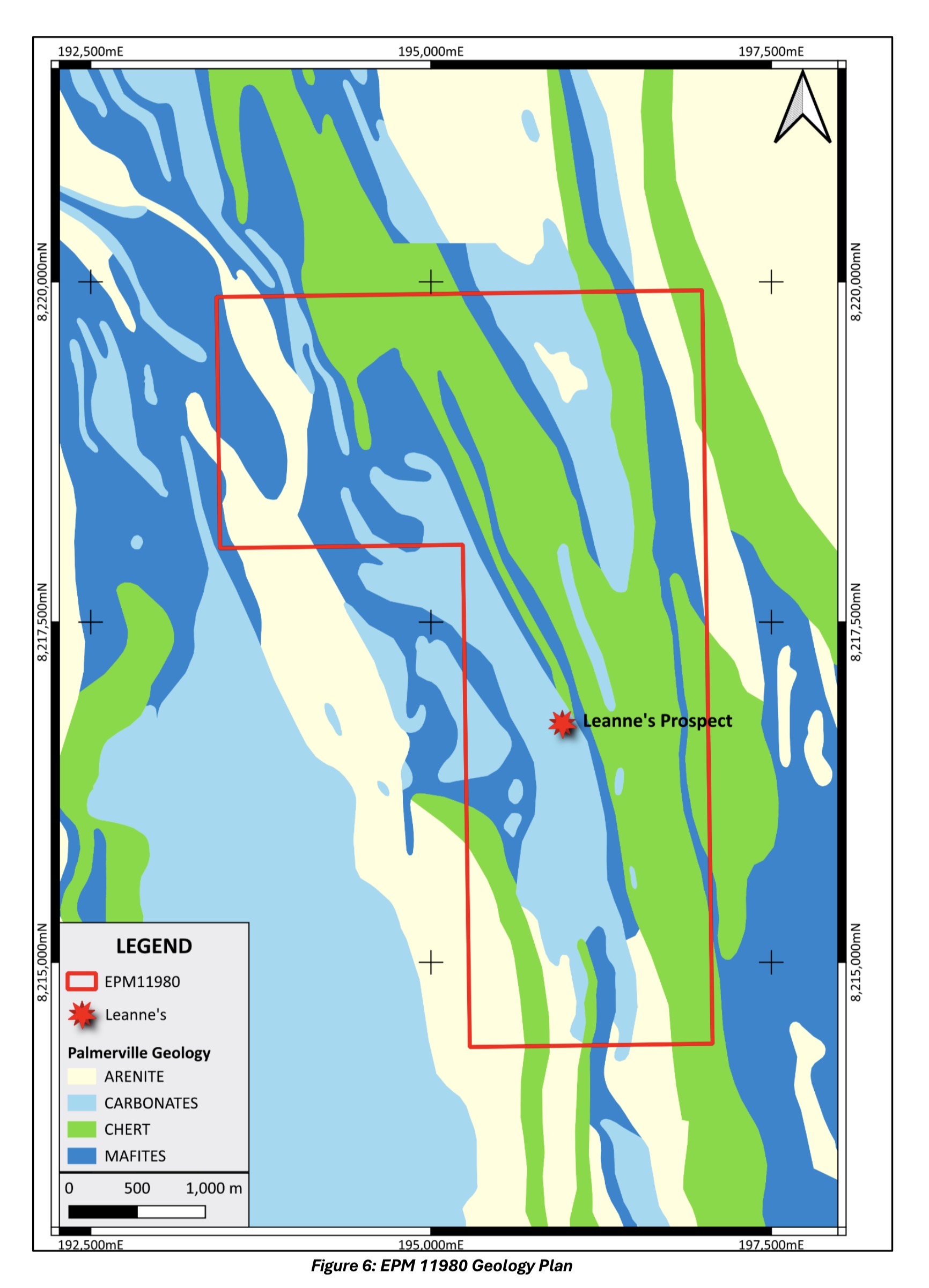 EPM 11980 lies within the Middle Palaeozoic Hodgkinson Province (represented by the Kitoba Member, Chillagoe and Hodgkinson Formations) and is separated from the Middle Proterozoic Dargalong Metamorphics to the west by the Palmerville Fault, a major NNW trending structure.