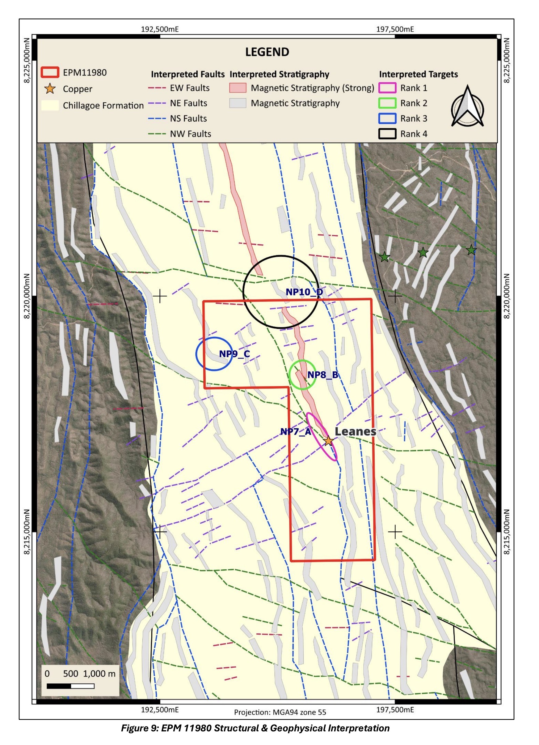 The listed targets will be DMR's priority in future exploration, as they represent complex structural area with a coincident magnetic body, which is NMR’s Leane’s model, a known copper occurrence along