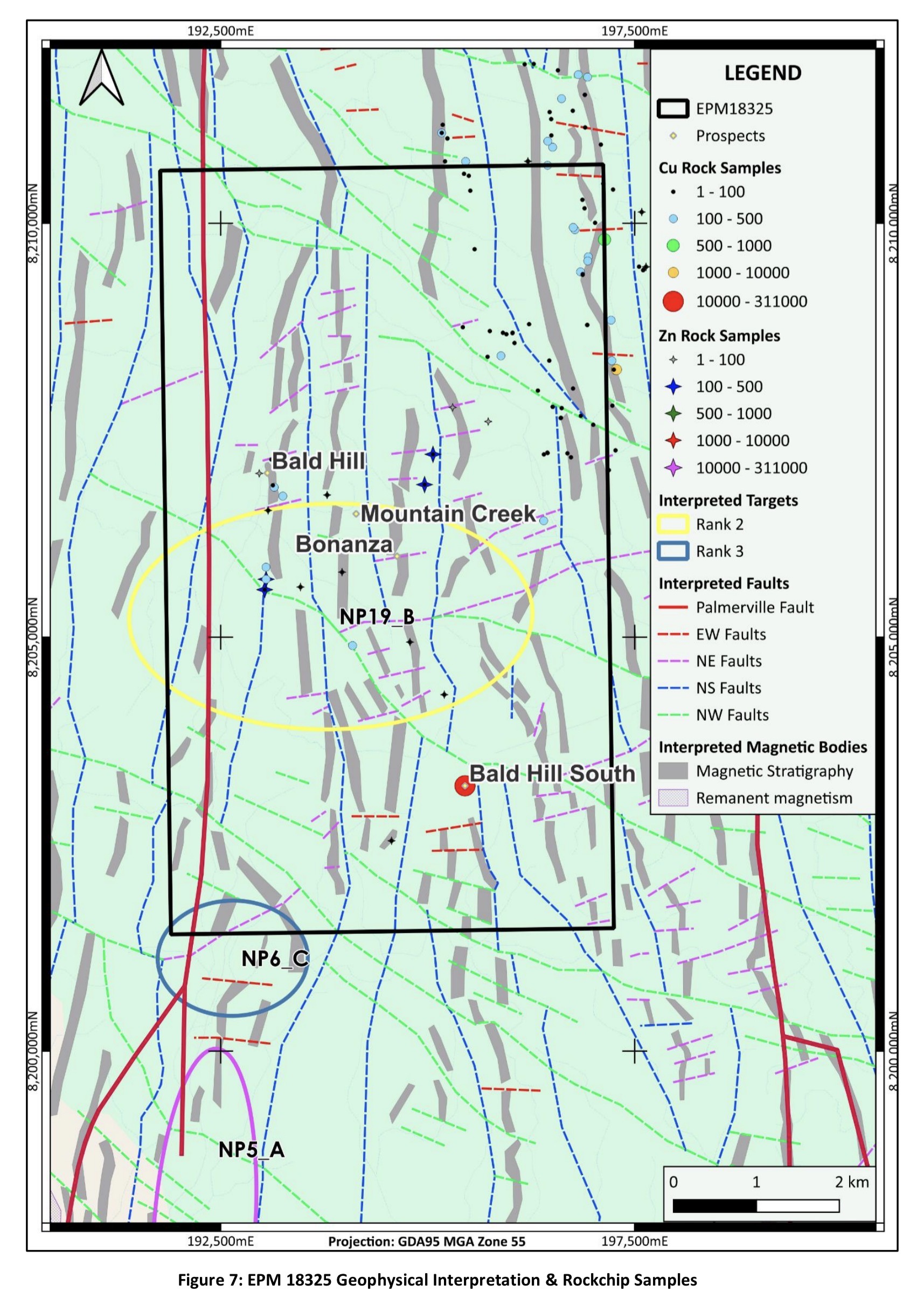 The interpretation area covered EPM 18325, as well as the surrounding NMR tenements and included all publicly available data, including historical drilling, geophysics and geochemical sampling, as well as data collected by NMR.