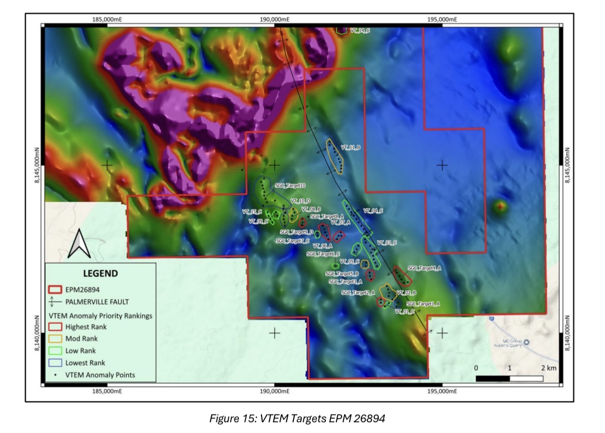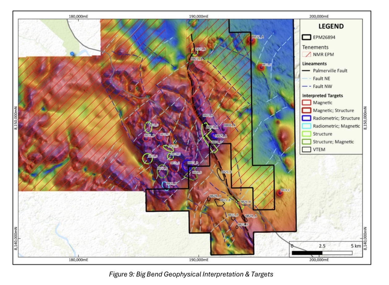 The best targets in EPM 26894 are the VTEM derived targets south-east of the Big Bend anomaly, which NMR intends to test with drilling and further geophysics.